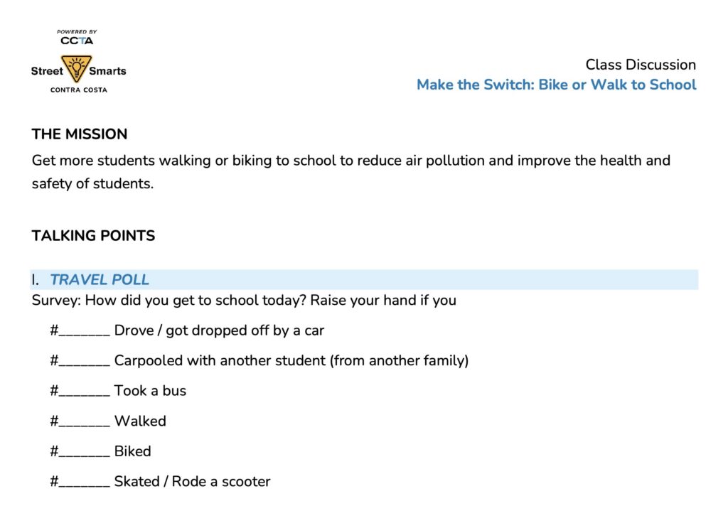 One-day lesson plan for a class discussion: “Be the change, bike and walk to school”